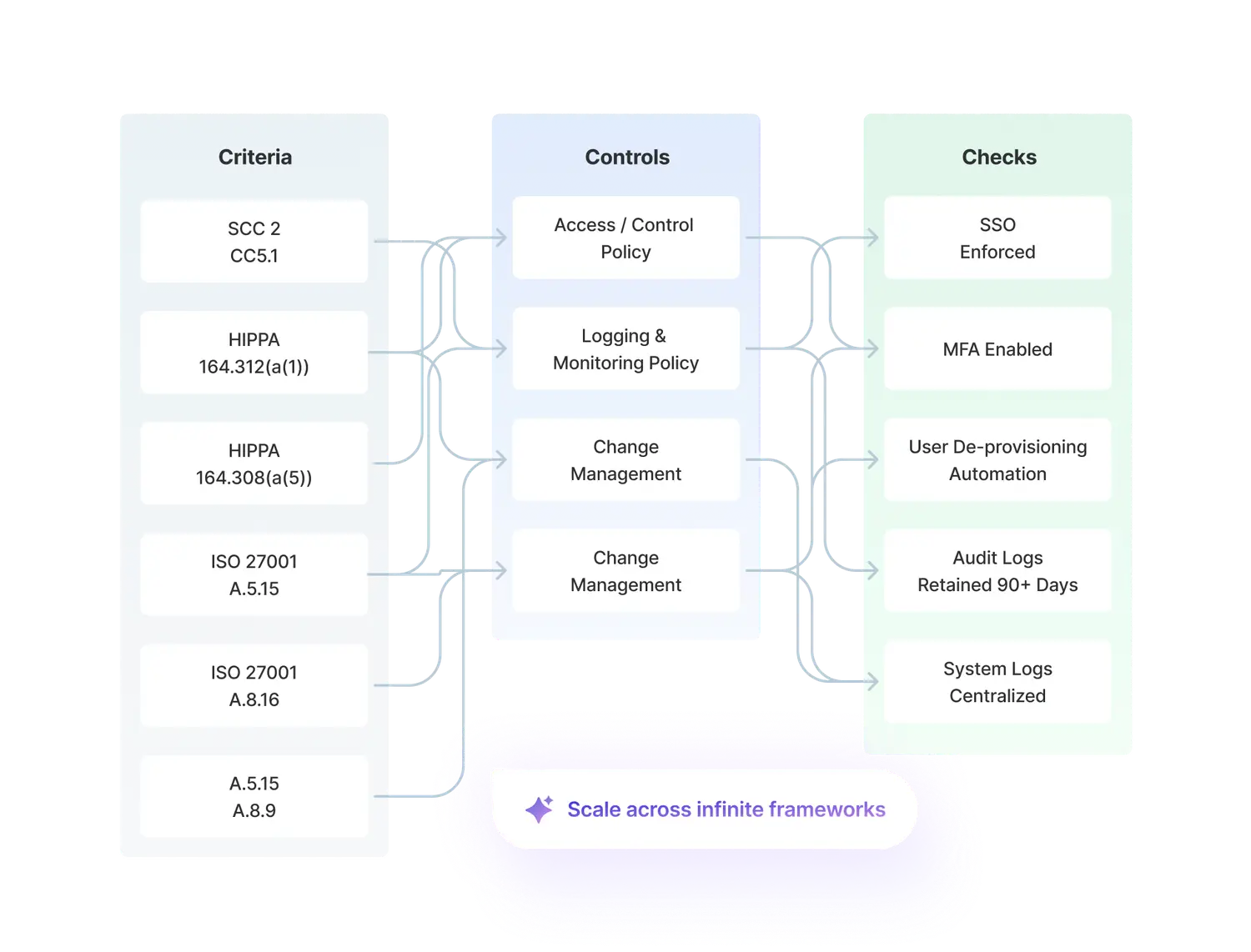 Modern platforms like Sprinto use dynamic control mapping, allowing teams to satisfy multiple standards such as SOC 2, ISO 27001, HIPAA, GDPR, and PCI DSS through a unified set of controls. This approach reduces duplication, improves coverage, and significantly lowers the cost and time associated with expanding into new certifications.