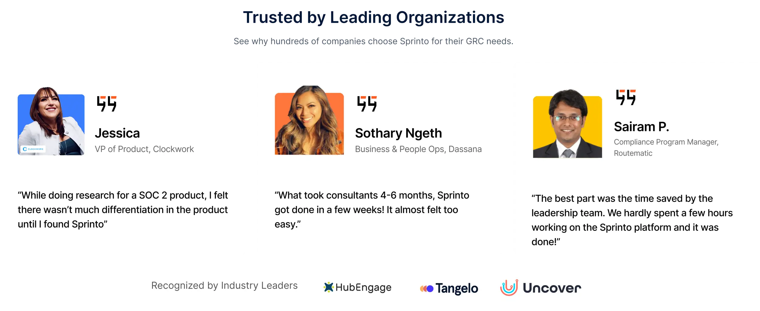 From early-stage teams to complex, growing orgs: Sprinto’s platform and workflows flex with your growth across risk, access, vendors, and frameworks