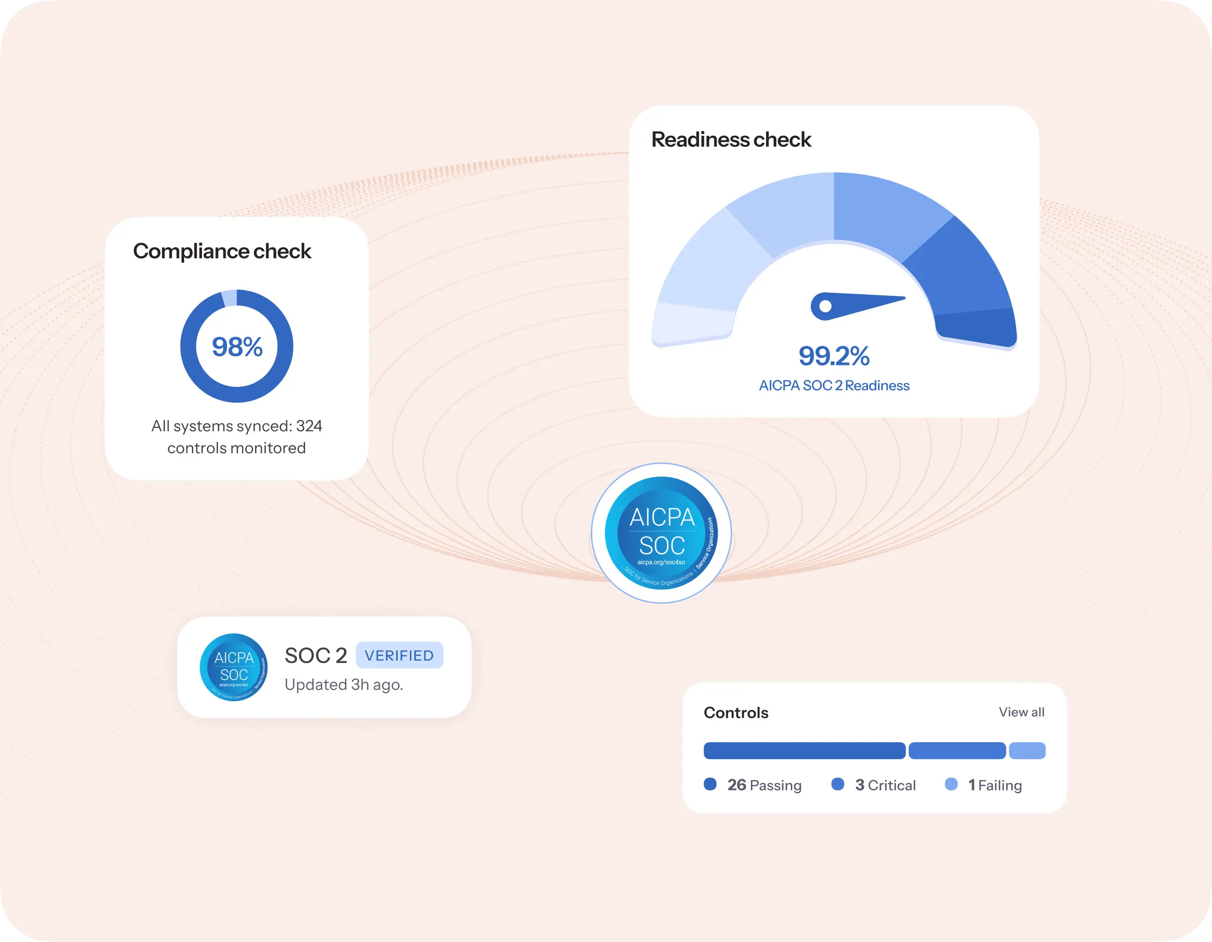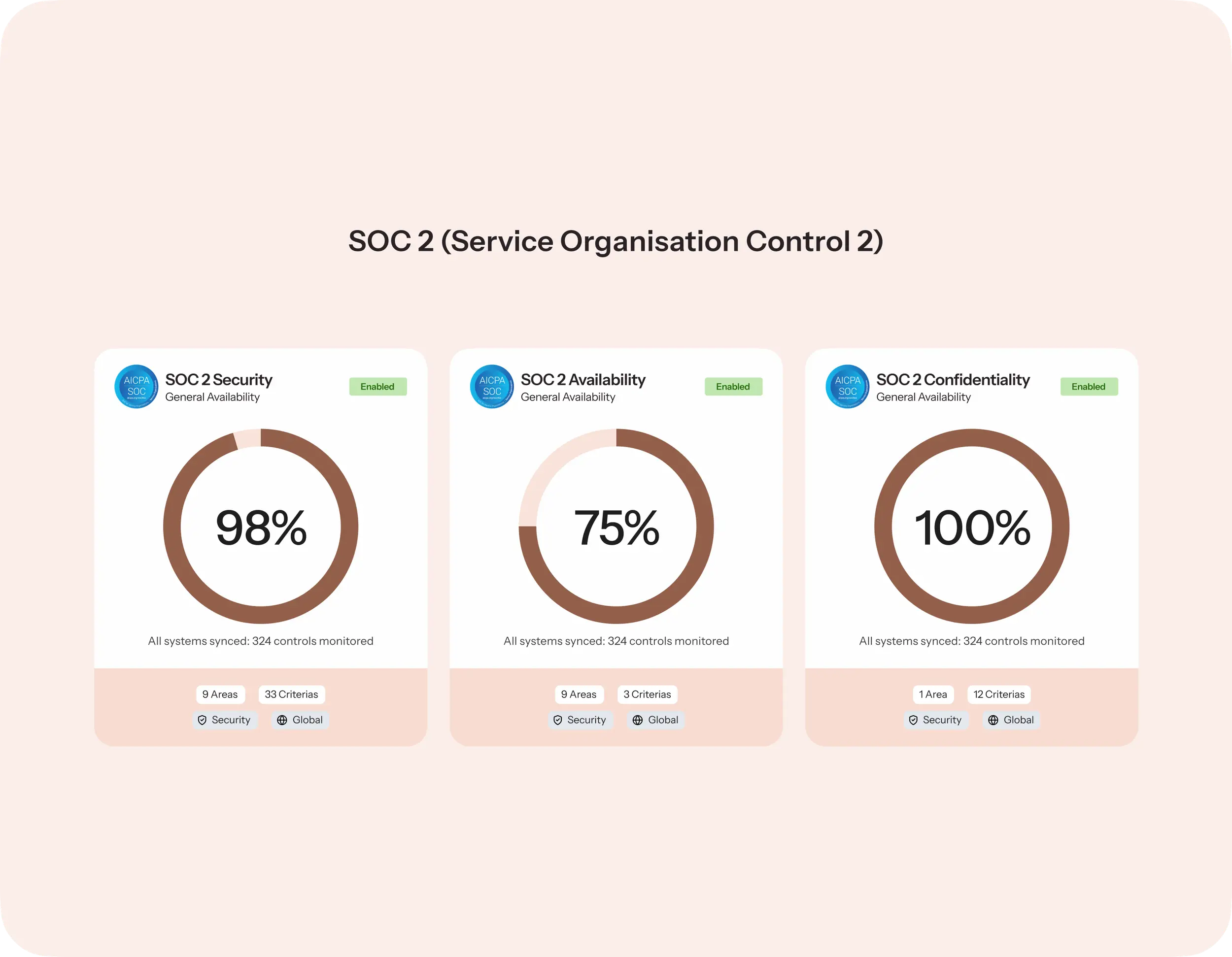 SOC 2 requires implementation and tracking of 100+ controls across security, availability, and more.