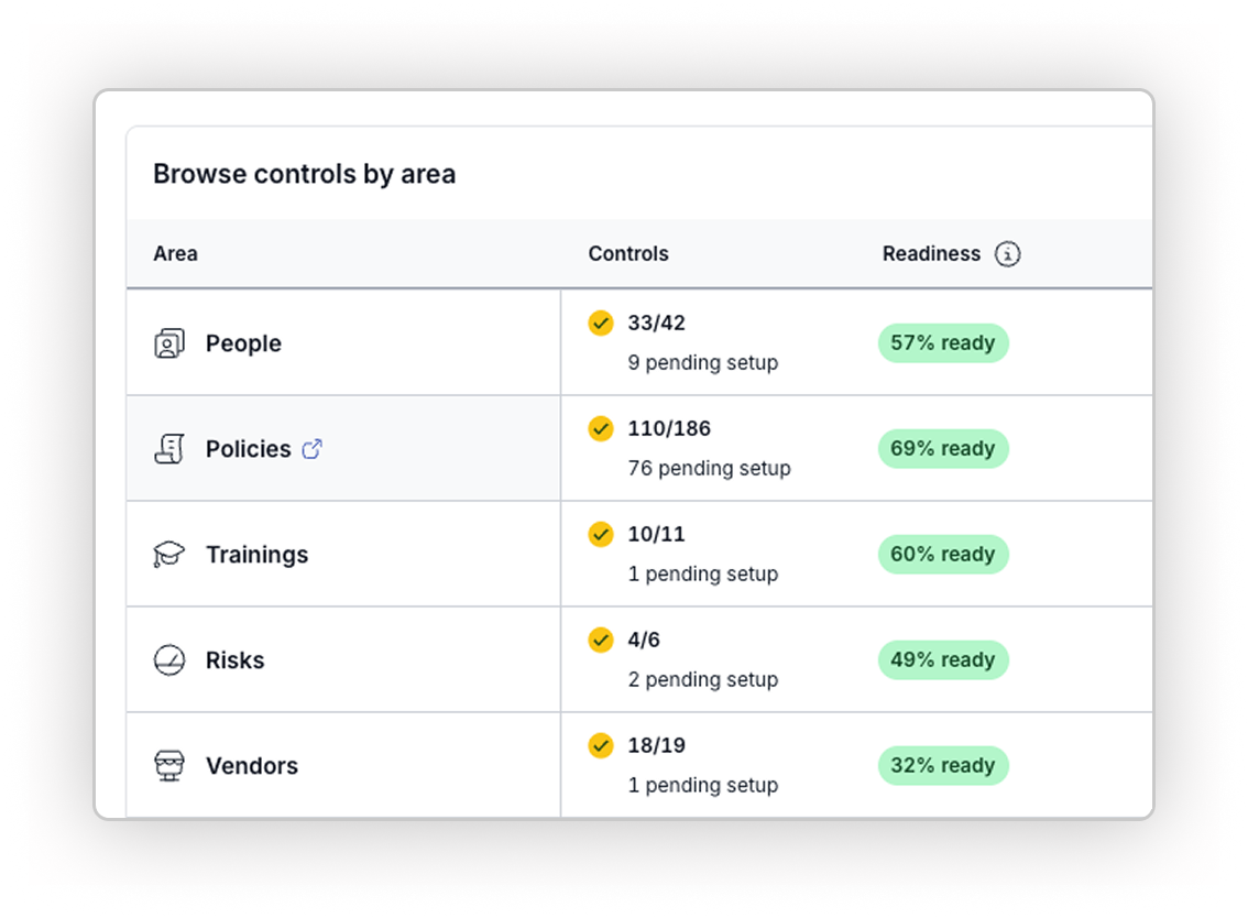 Import frameworks or map your policies, risks, and controls to get instant visibility across programs.